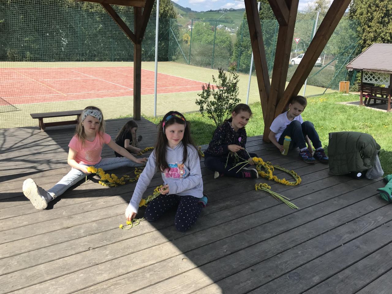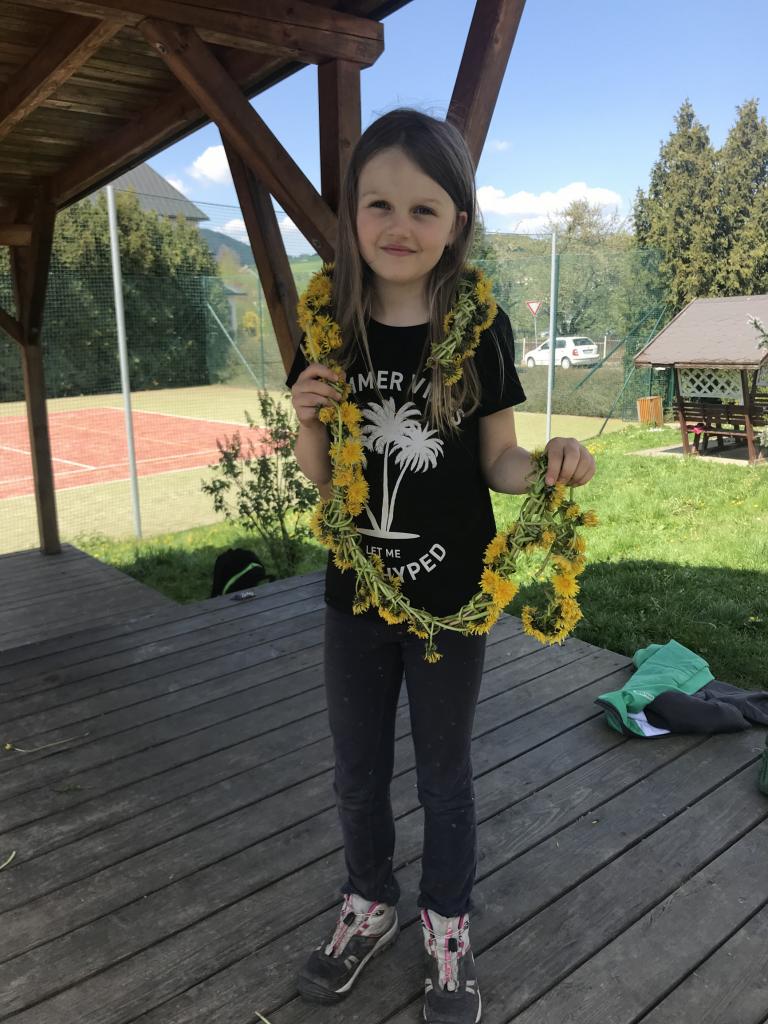 V prvních májových dnech se děvčata z 1. oddělení ŠD učila plést věnečky z pampelišek. V pátek 5. 5. 2023 se uskutečnila Pampeliškománie - pokus o rekord - upletení nejdelšího hada z pampelišek. Děvččata to ohromně bavilo, všechna dokázala uplést hada téměř dvoumetrového, ale nejdelšího vytvořila Kristýnka. Měřil 3 m. Na závěr jsme pampeliškovými hady ozdobily smrček před školou a vznikl krásný "jarní stromeček". Těšíme se další Pampeliškománii - opět za rok.
