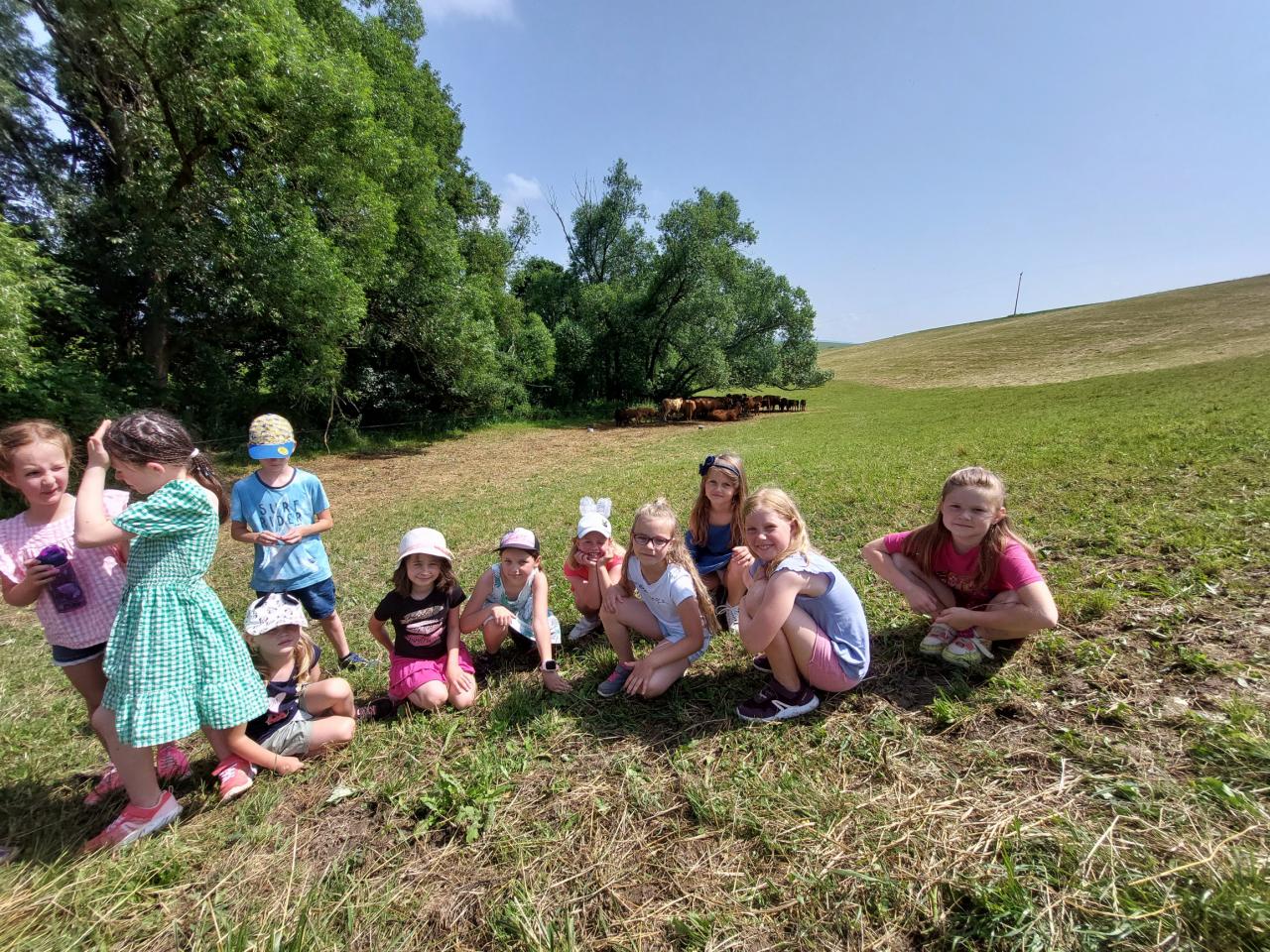 Ve čtvrtek žáci prvního a druhého ročníku navštívili Ekofarmu v Dolní Lhotě, kde nás srdečně přivítal pan J. Masař. Děti poznávaly pšenici, oves a společně si také povyprávěli proces, který vede k výrobě chleba. Pak jsme zamířili na pastvu ke stádu krav, kde zazněla spousta zajímavostí o těchto zvířatech. Např. jestli má kráva zuby, čím se živí telátka po narození a kdy se učí chodit, co je struk, jalovice a spousta dalších. Moc děkujeme za velmi zajímavé a milé setkání a těšíme se na další.