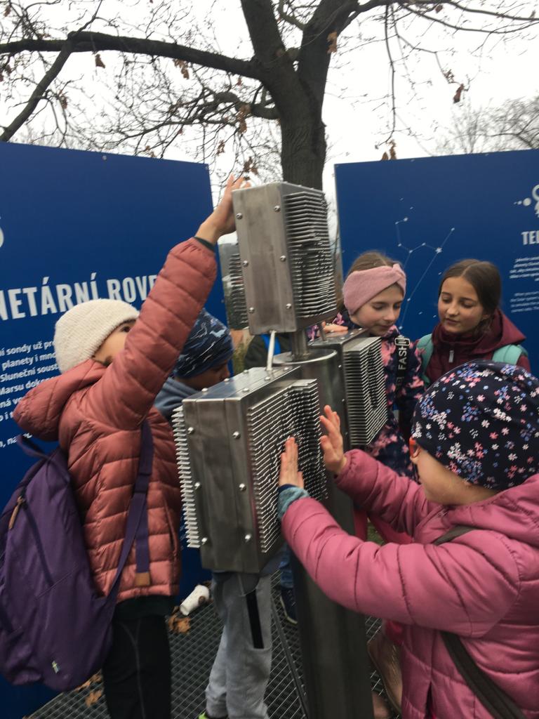V úterý 12. listopadu žáci 3., 4., a 5. ročníku navštívili Hvězdárnu a planetárium Brno. Hned po příchodu si mohli vyzkoušet několik interaktivních prvků souvisejících s astronomií, které jsou umístěny v parku před hlavní budovou planetária.