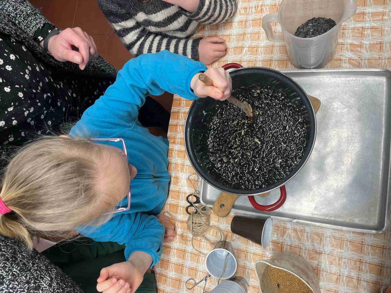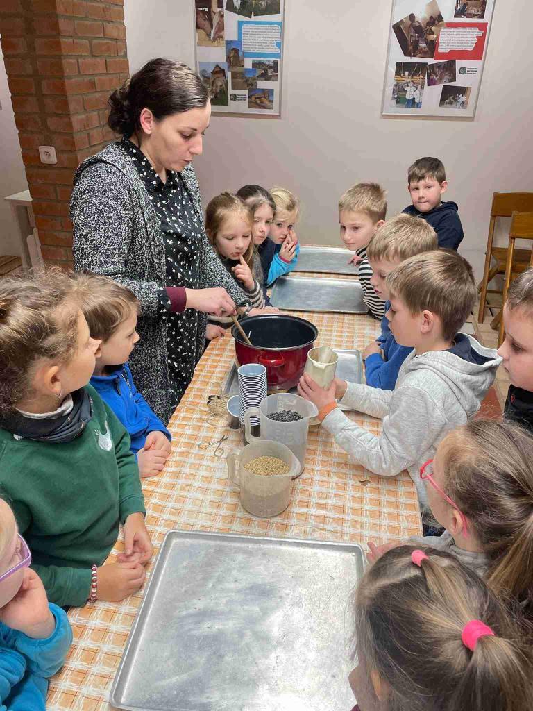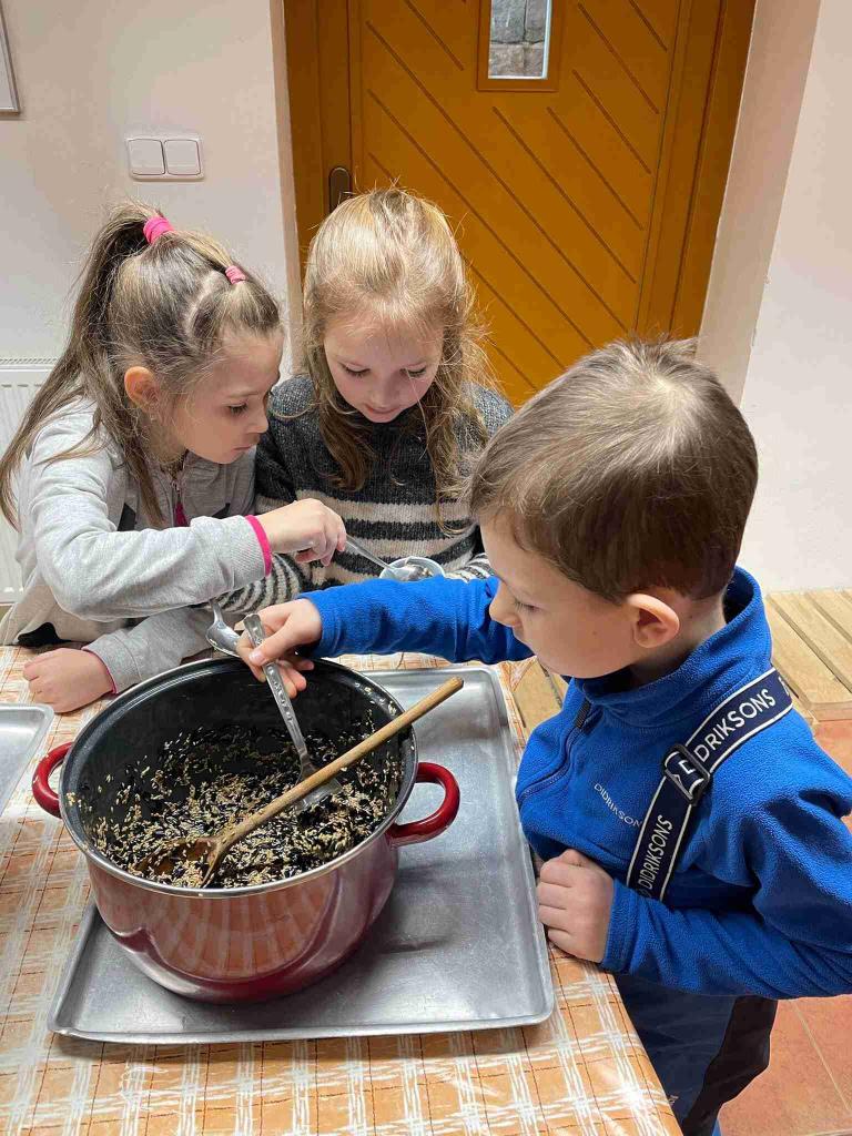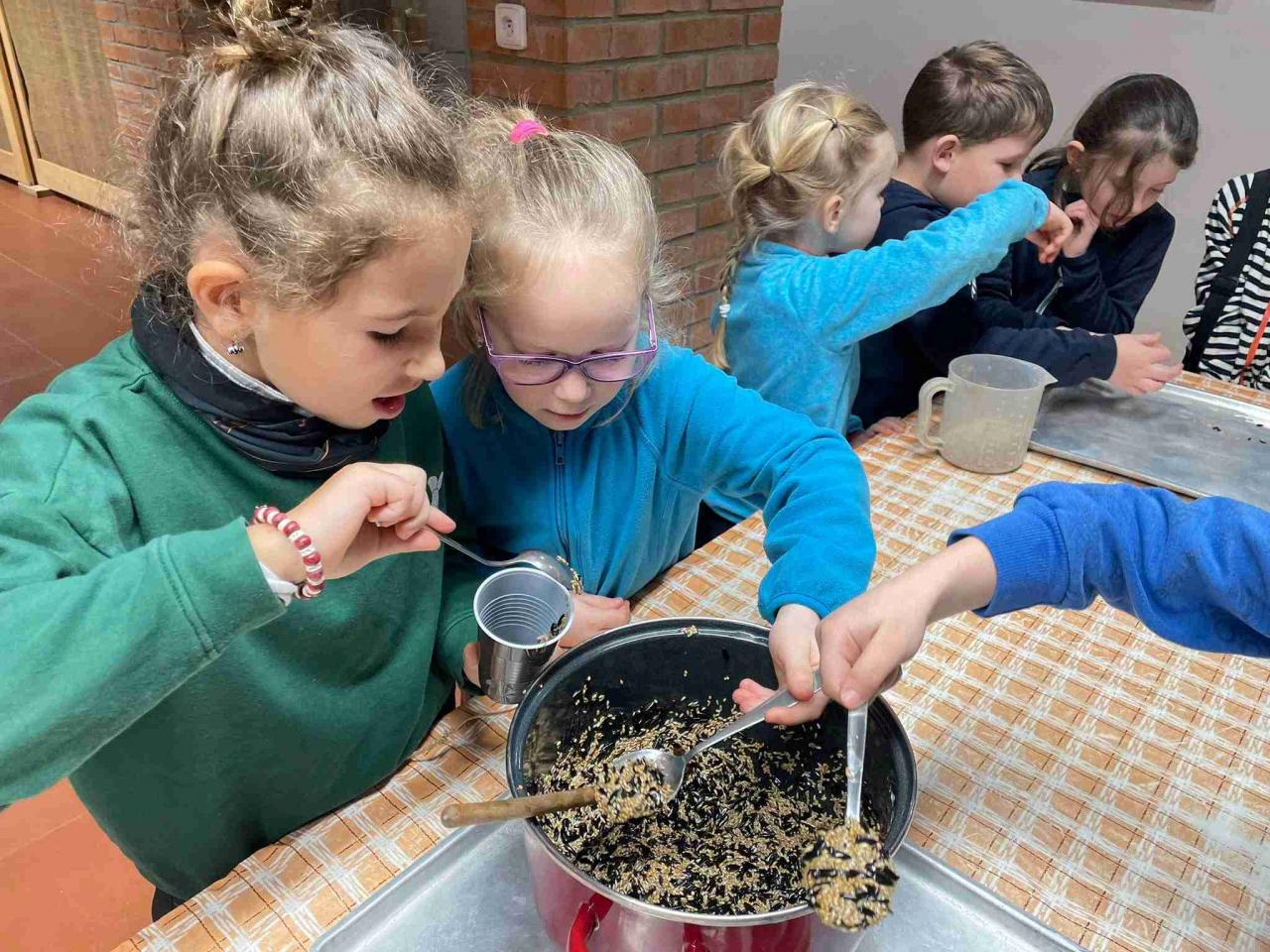 Děti si ve dvojičkách vyrobily krmítka ze semínek a sádla (najdete je před školou u pergoly, pokud je ptáčkové už nevyzobali). Našel se čas i na ptačí malování a na rozloučenou jsme si mohli projít celý statek, pohladili si hrdličku, nahlédli jsme do ptačích budek, poměřili si naše „rozpětí křídel“ a potichoučku obdivovali roztomilá, čerstvě narozená kůzlátka. Nakrmili jsme ovečky a kozy ve výběhu a běželi na autobus, abychom se ve větrném počasí trochu zahřáli. Co nás čeká příště….? Nechte se překvapit :-)
