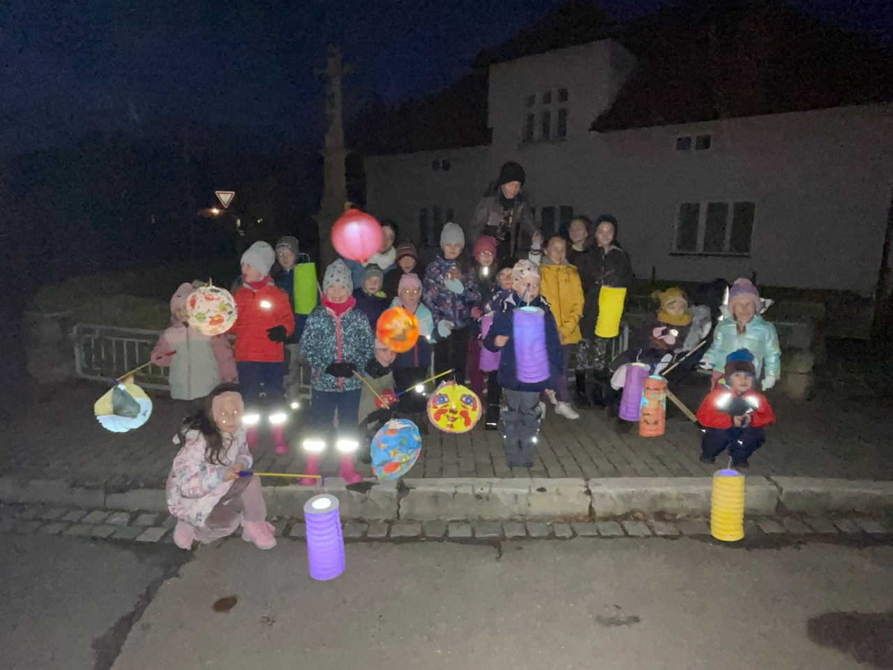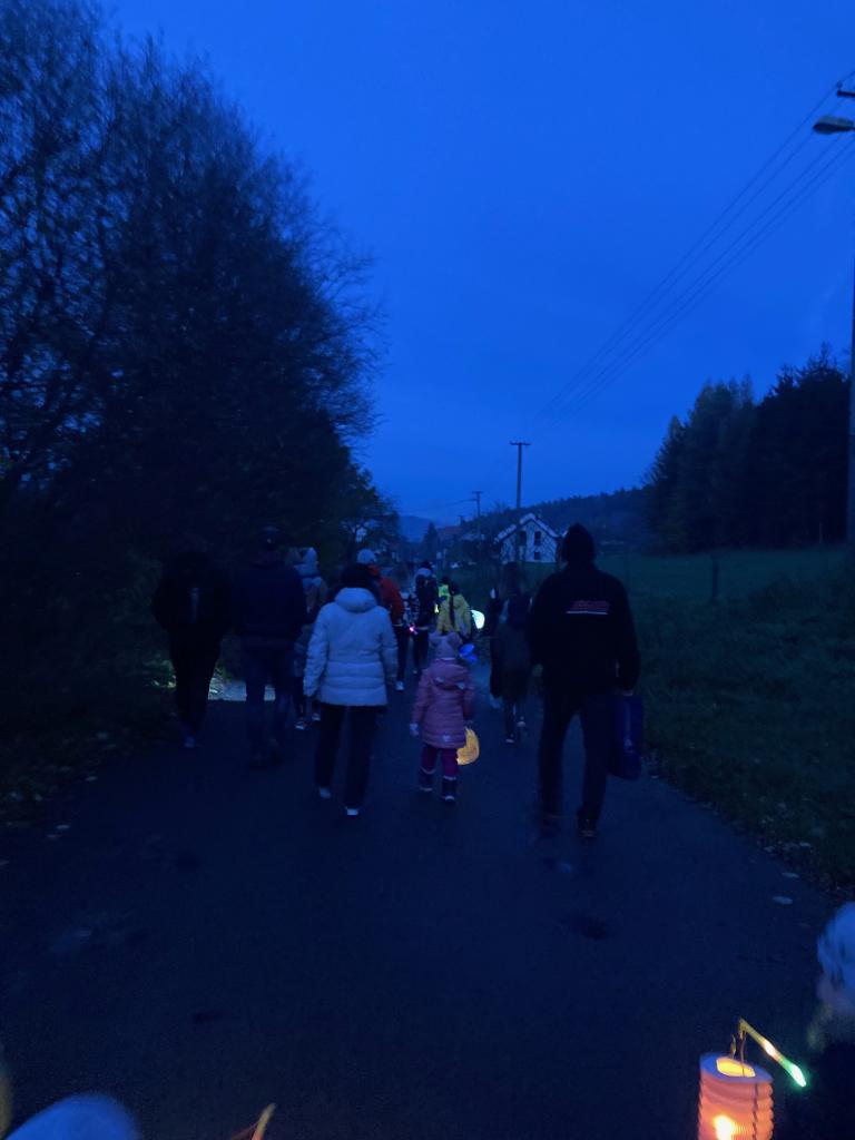V předvečer státního svátku se děti spolu se svými rodiči vydali na "putování se světýlkem". Nejpočetnější skupina vyrazila od myslivecké chaty, další pak od Sehradic a nejdelší trasou doputovaly odvážné děti až z Horní Lhoty. V cíli u hasičské zbrojnice v Dolní Lhotě všechny čekala odměna v podobě dobrého teplého čaje a drobná sladkost. Děkujeme hasičům za toto občerstvení i přípravu ohně na opékání, u kterého jsme se mohli nejen ohřát, ale také si popovídat v přátelské atmosféře.