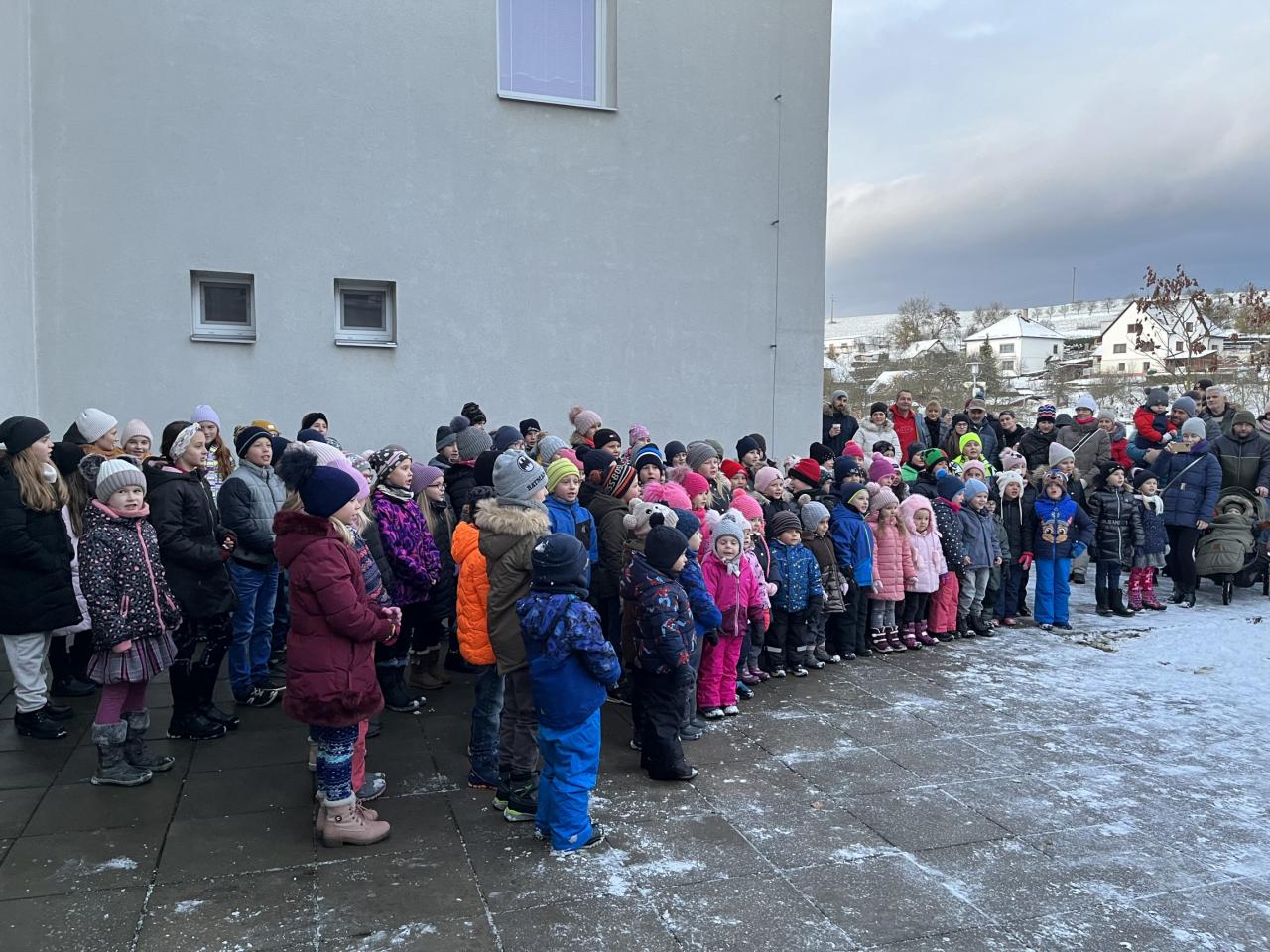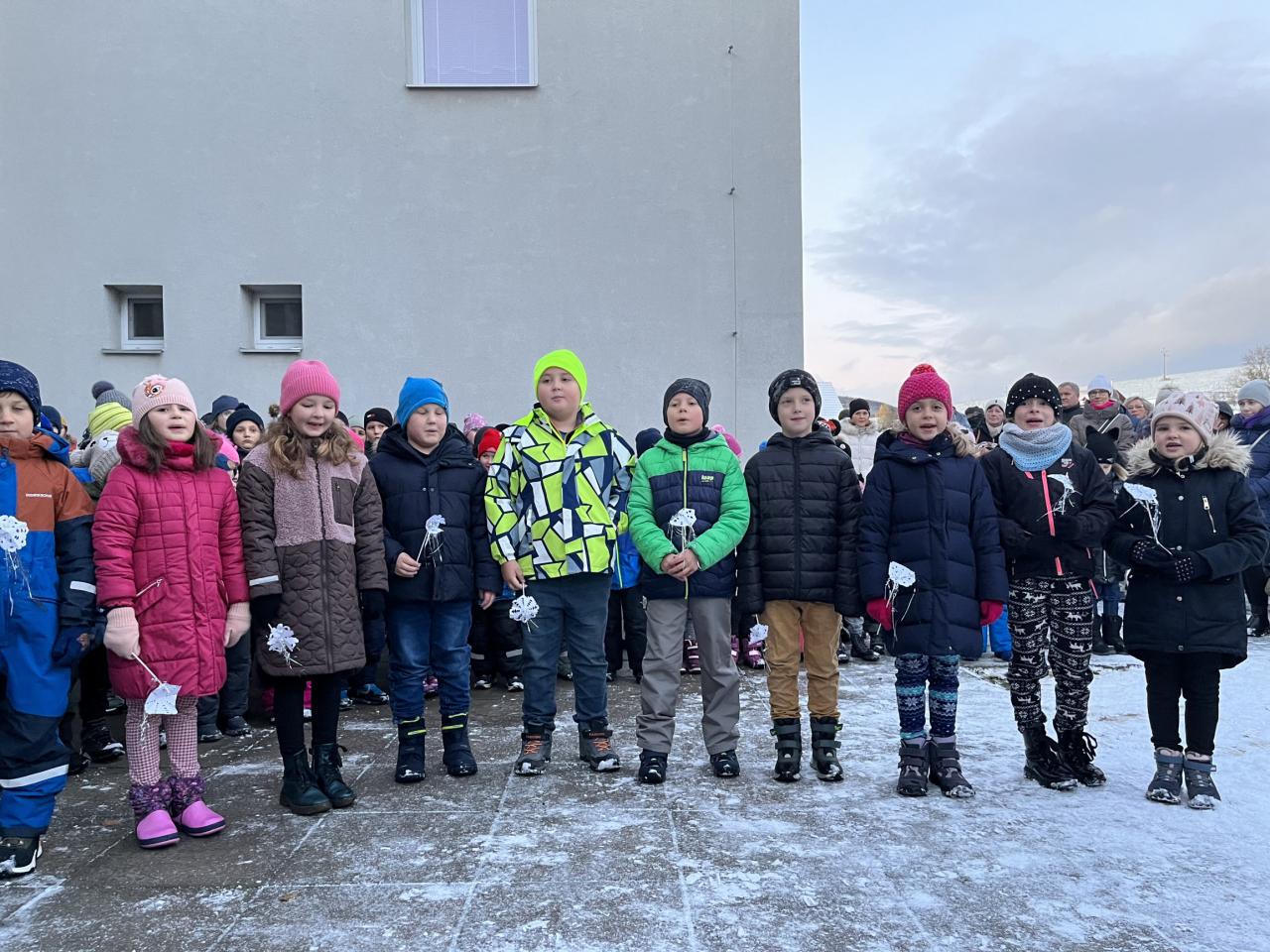 V zimní náladě podkreslené lehkou sněhovou nadílkou děti krátce vystoupily na návsi s pásmem písní, básní i pranostik. Po té napsaly Ježíškovi svá přání a jako už tradičně je poslaly s balonkem do nebes. Děkujeme dětem za vykouzlení předvánoční atmosféry a obci Dolní Lhota za sladkosti a čaj pro zahřátí. Více fotografií naleznete ve fotogalerii.