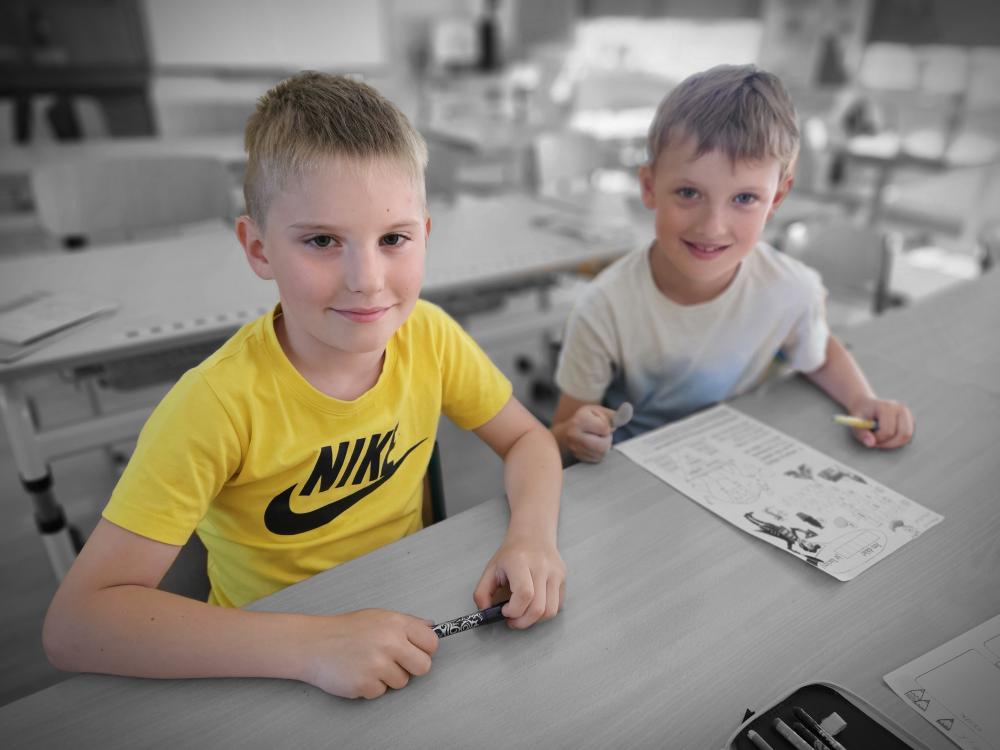 Dnes si prvňáčci a druháčci vyzkoušeli společné učení ve skupinkách. Patronem každé skupinky byl starší druháček. Kdo se učil od koho??? Každý od každého...