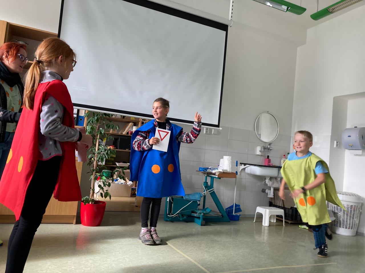 V poslední části je čekala nejen teorie, ale také simulace „autíček“ na křižovatce. Naše děti si se všemi úkoly dobře poradily, také velká pochvala za pěkné a ohleduplné chování!