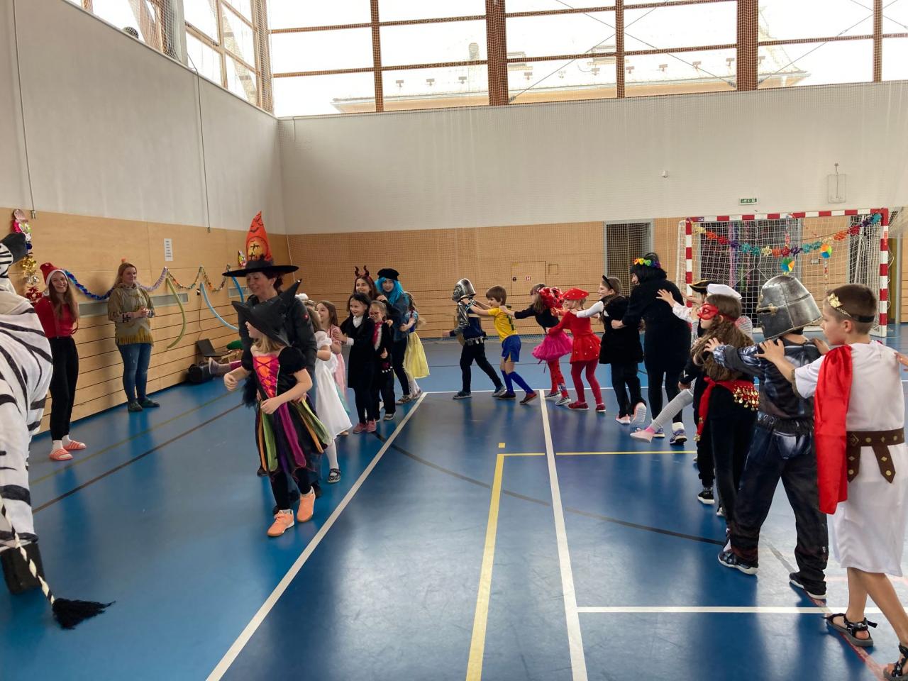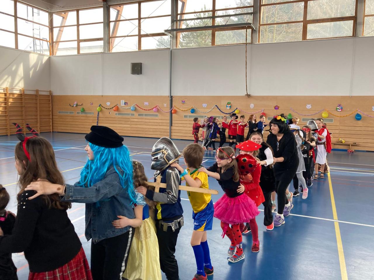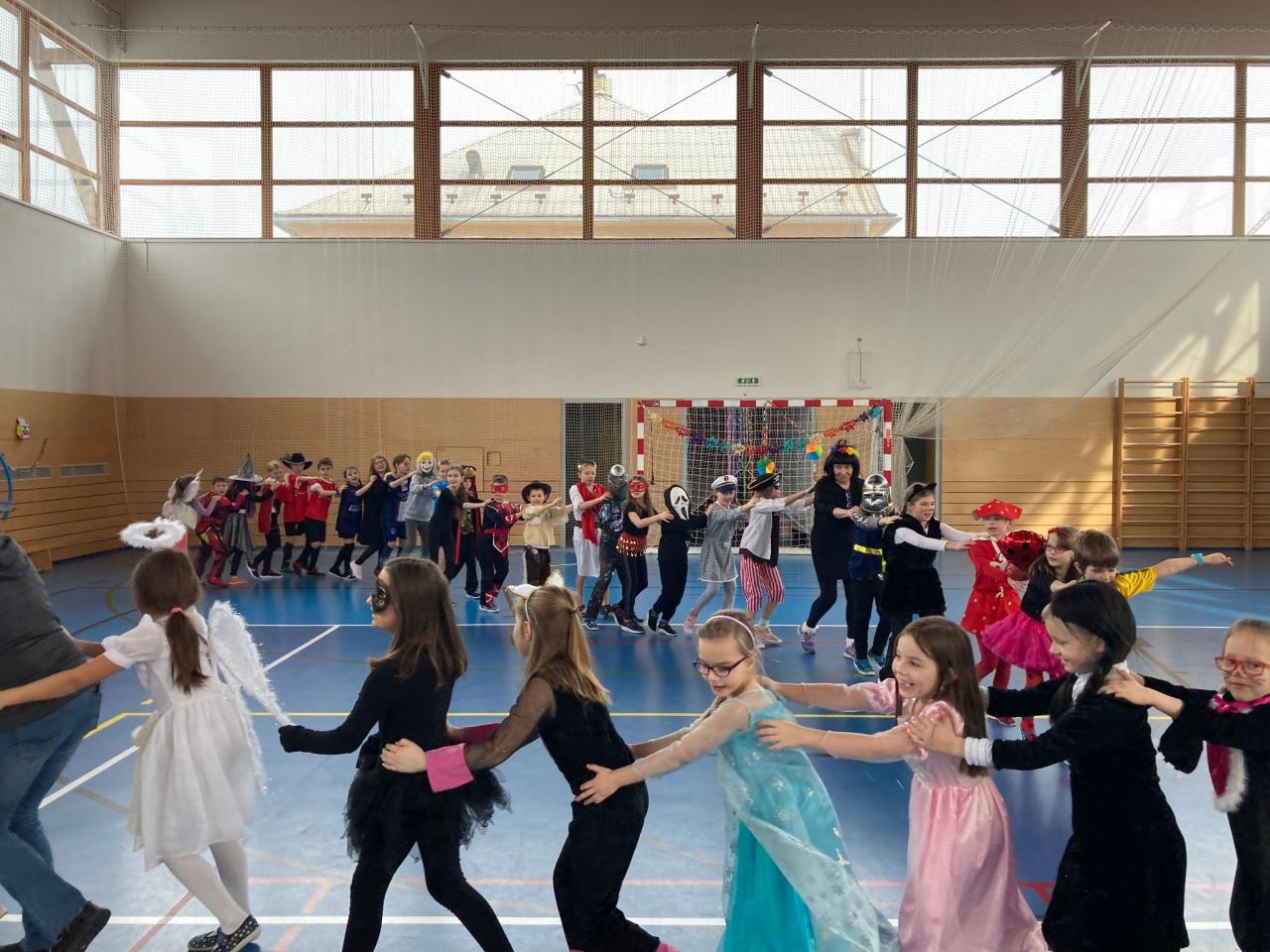 Vydařenému karnevalu předcházela společná práce ve výtvarných a pracovních výchovách, kde si děti vytvořily vlastní veselou výzdobu celé sportovní haly. A jak se vše vydařilo? Podívejte se do následující fotogalerie.