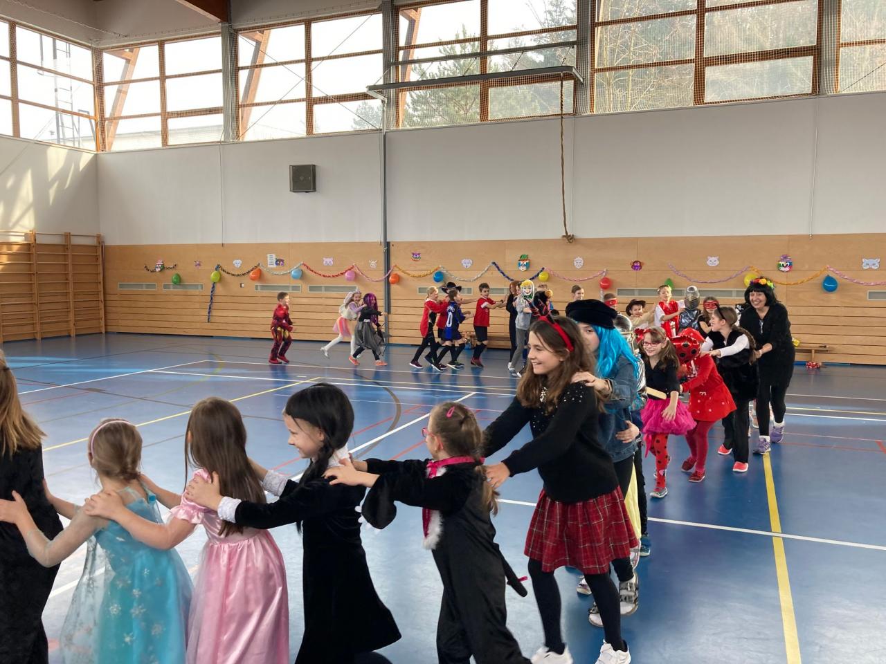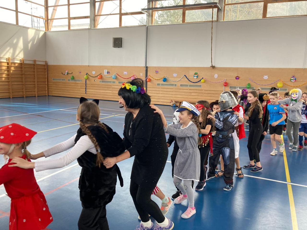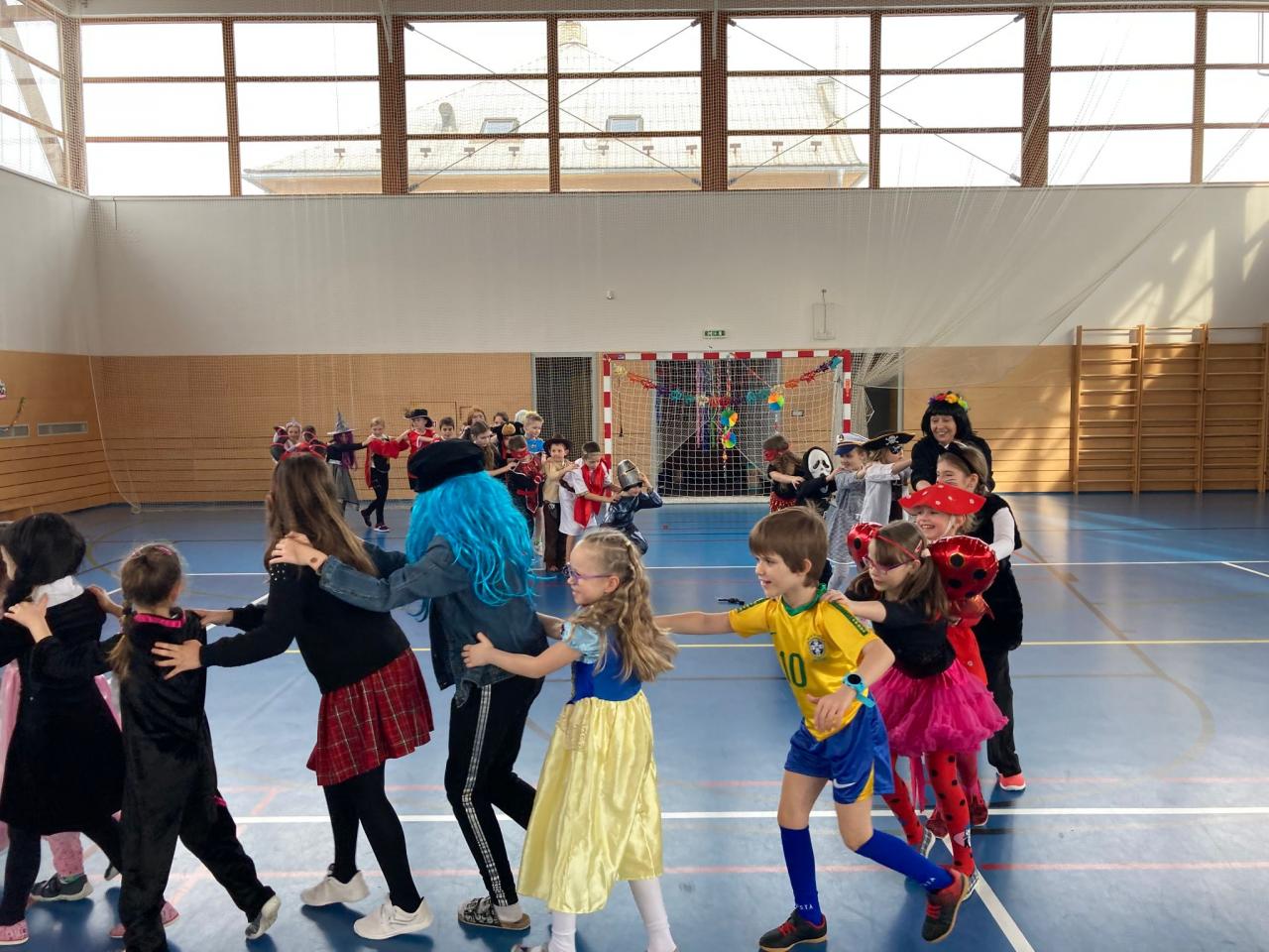 Vydařenému karnevalu předcházela společná práce ve výtvarných a pracovních výchovách, kde si děti vytvořily vlastní veselou výzdobu celé sportovní haly. A jak se vše vydařilo? Podívejte se do následující fotogalerie.