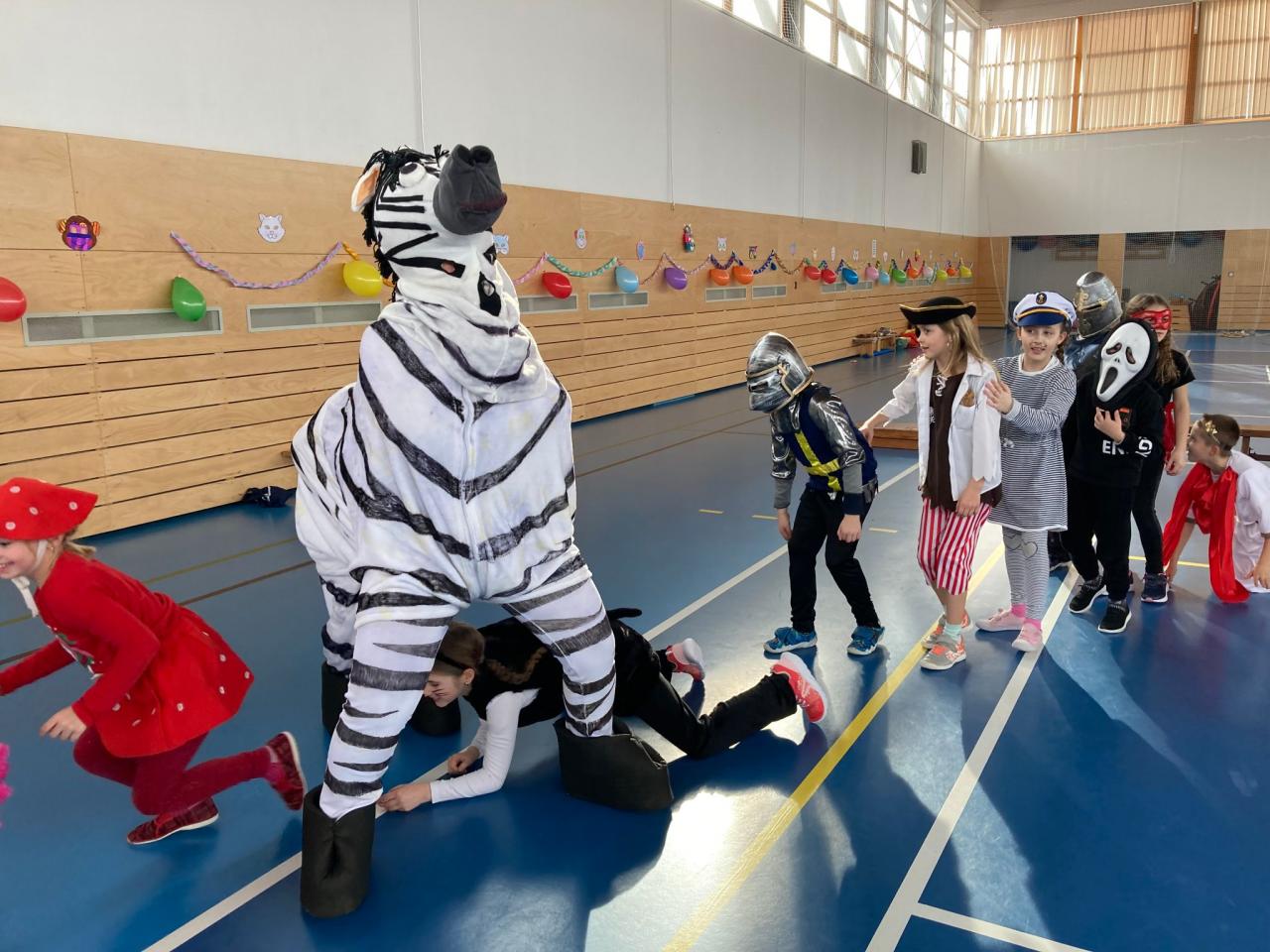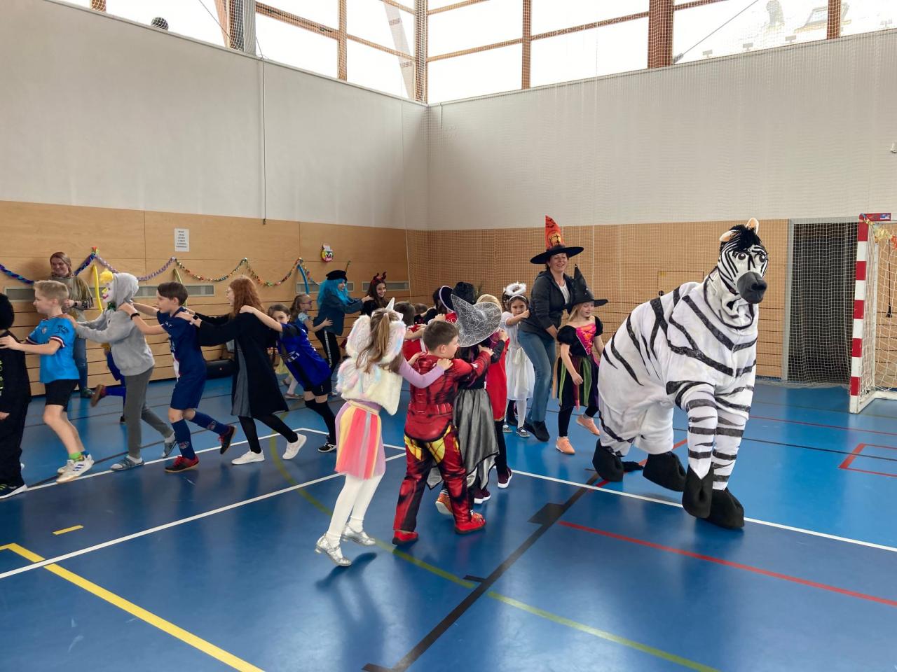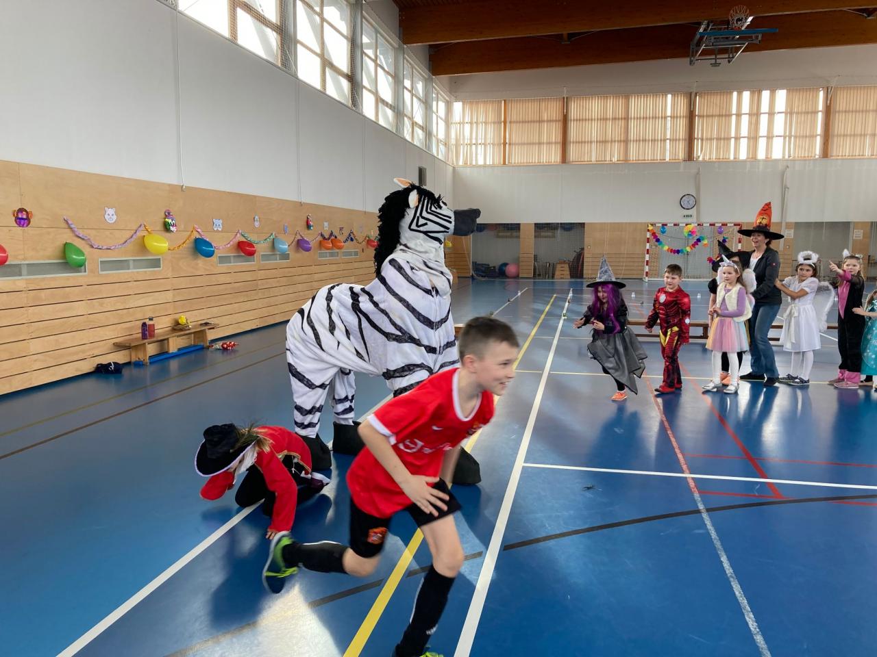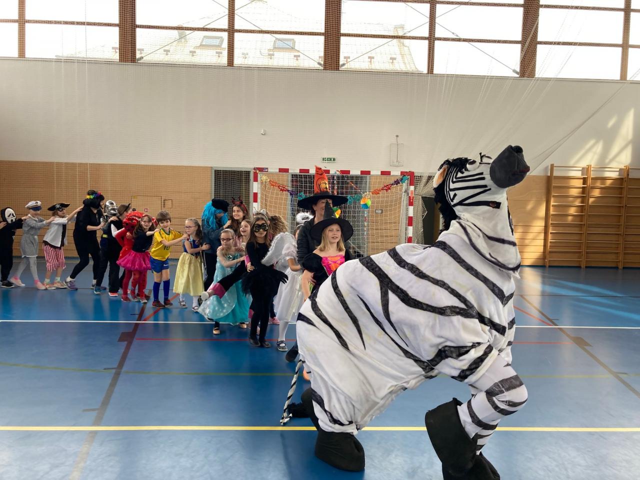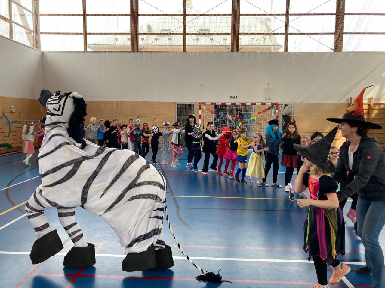Ještě než se všichni rozutekli na jarní prázdny, pořádně jsme si zadováděli na školním karnevalu. V úvodu nechyběl průvod masek s překvapením – velkou zebrou, která děti pořádně rozparádila. Následovaly soutěže o sladké odměny, občerstvení či tancování s hudbou.