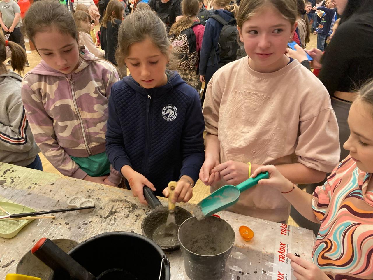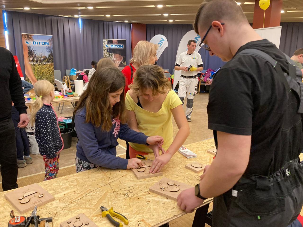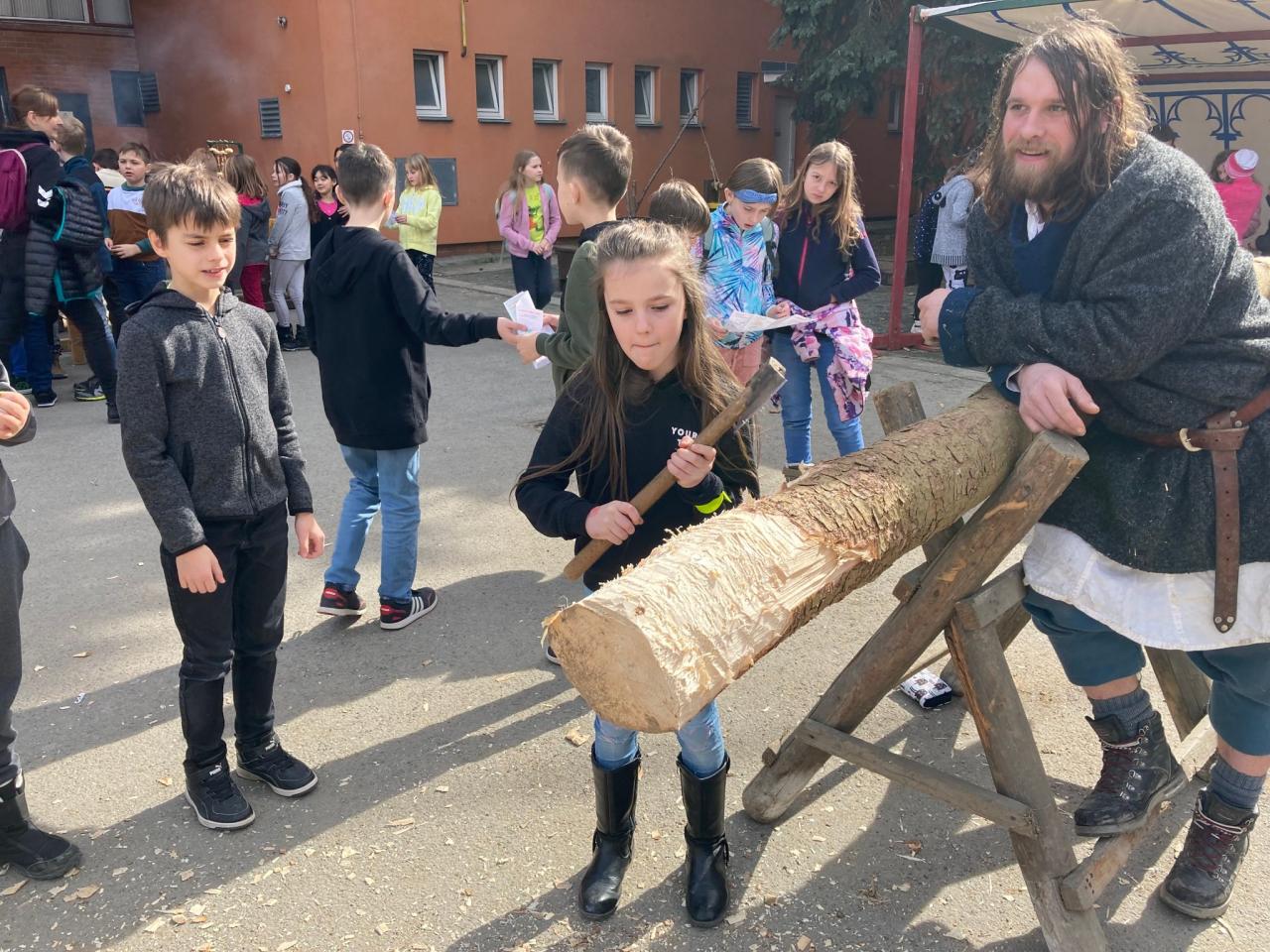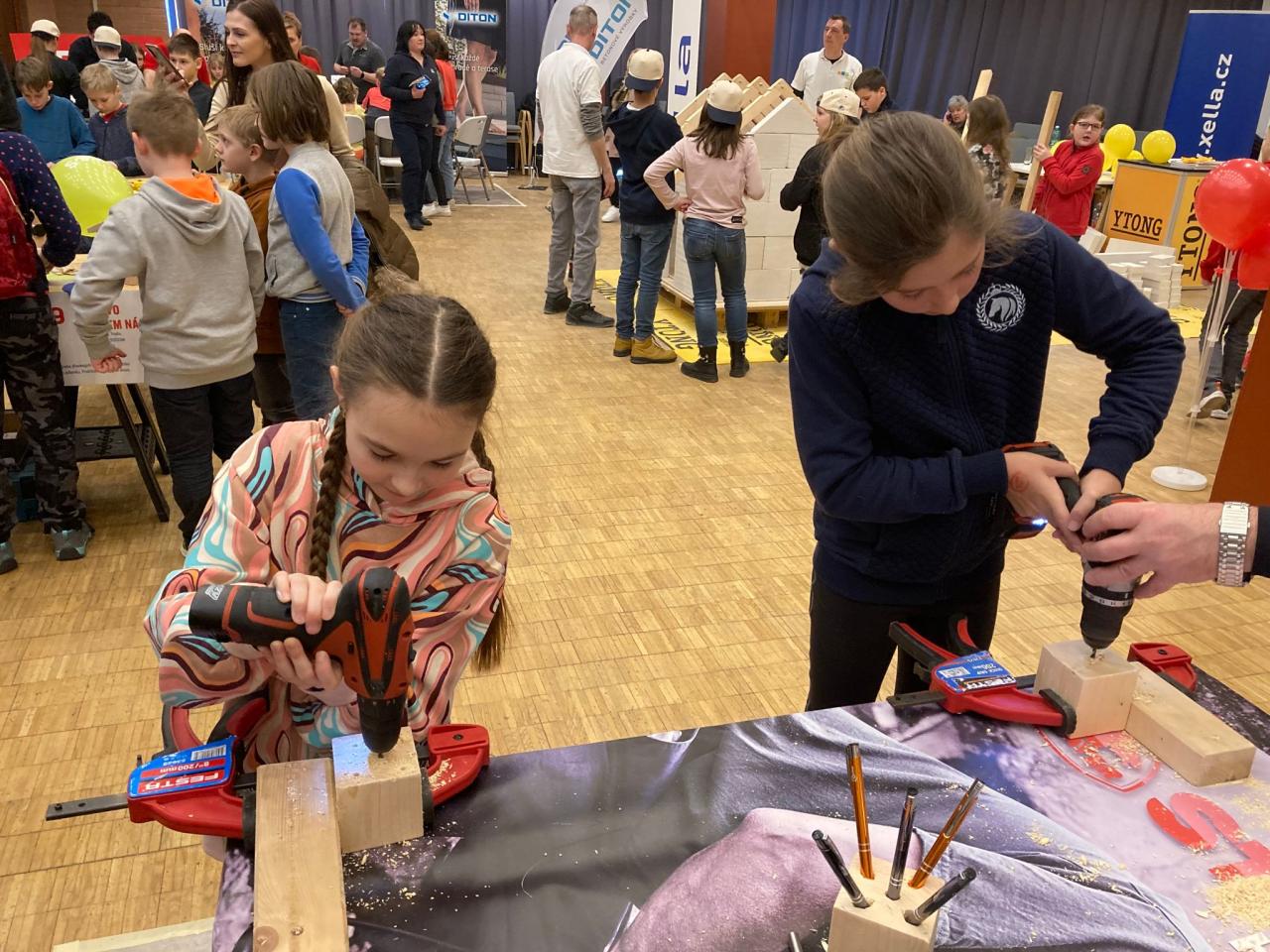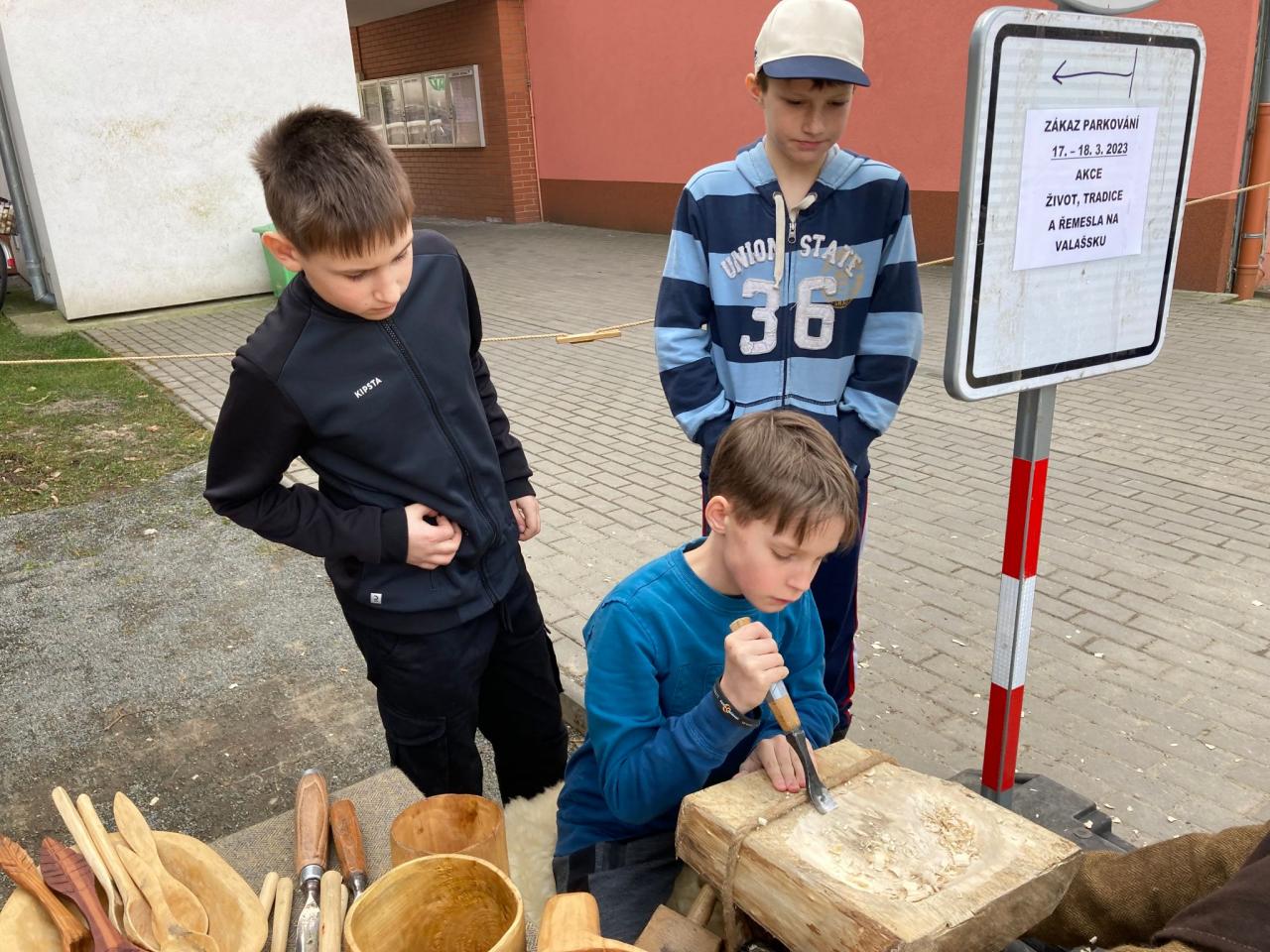 Děti si vlastnoručně vyzkoušely kout hřebíky, tesat dřevěné kůly, šít, dekorovat kraslice, vyrábět vizovické pečivo, míchat beton, vyřezávat ze dřeva, stavit dům, pokládat střechu, smontovat vypínač, vyzkoušet drátenictví, vrtat do dřeva a spoustu dalšího. Dále se mohly vyfotit se ve fotokoutku nebo navštívit kadeřnici a nechat si upravit vlasy. Celý program probíhal formou týmové hry, ve které se sbíraly body a na závěr naši žáci byli odměněni certifikátem „Velmistři Valaši“. Přesvědčte se sami v následující fotogalerii, jak jsou naše děti zručné!