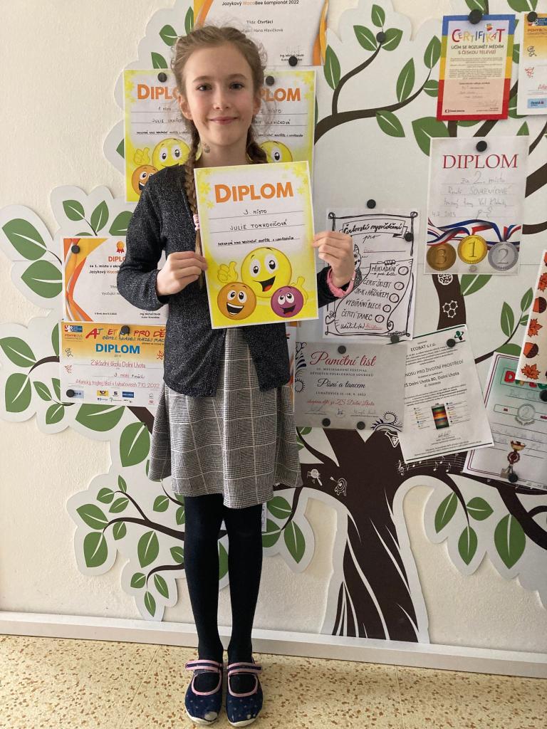 V silné konkurenci zúčastněných škol: Luhačovice, Želechovice, Slopné, Sehradice, Biskupice a Pozlovice jsme obsadili 1. místo v kategorii starších žáků Julie Zrníková, 2. místo Miriam Hlavičková a 3. místo Julie Tonkovičová v kategorii mladších žáků. Jako bonus získala Miriam i cenu diváka. Velká gratulace všem a hodně úspěchů v následujícím okresním kole!