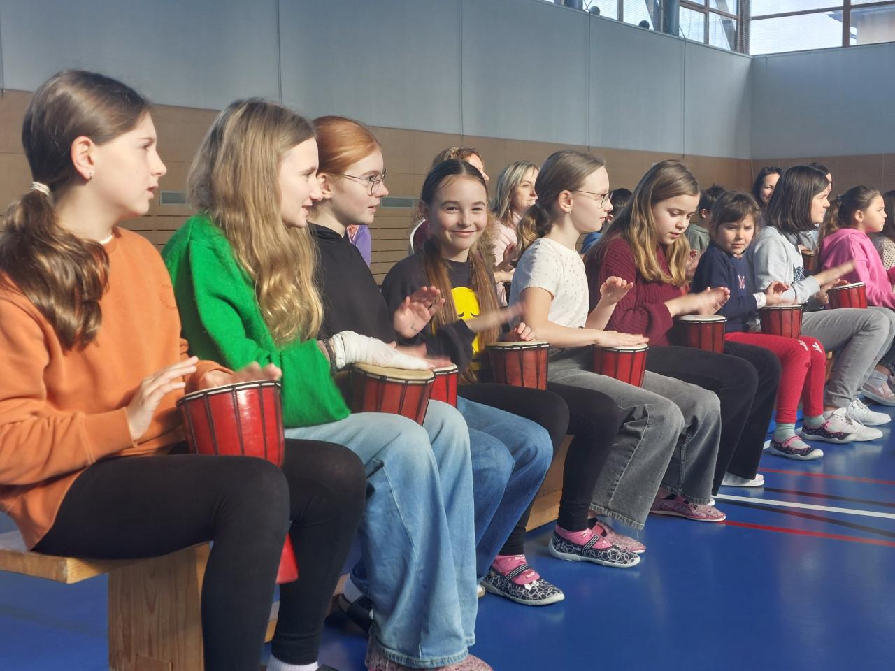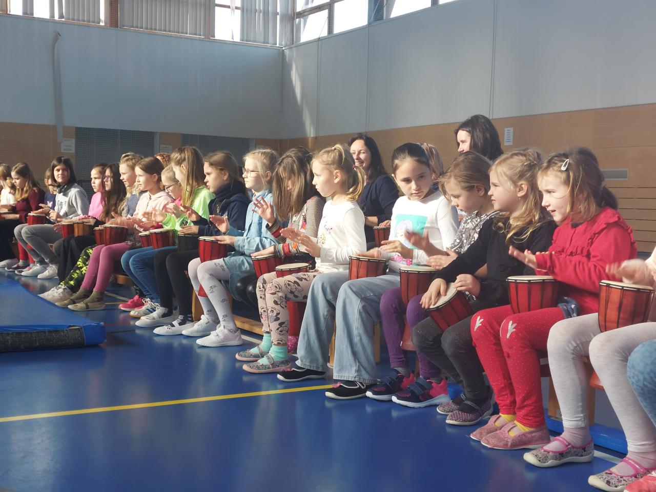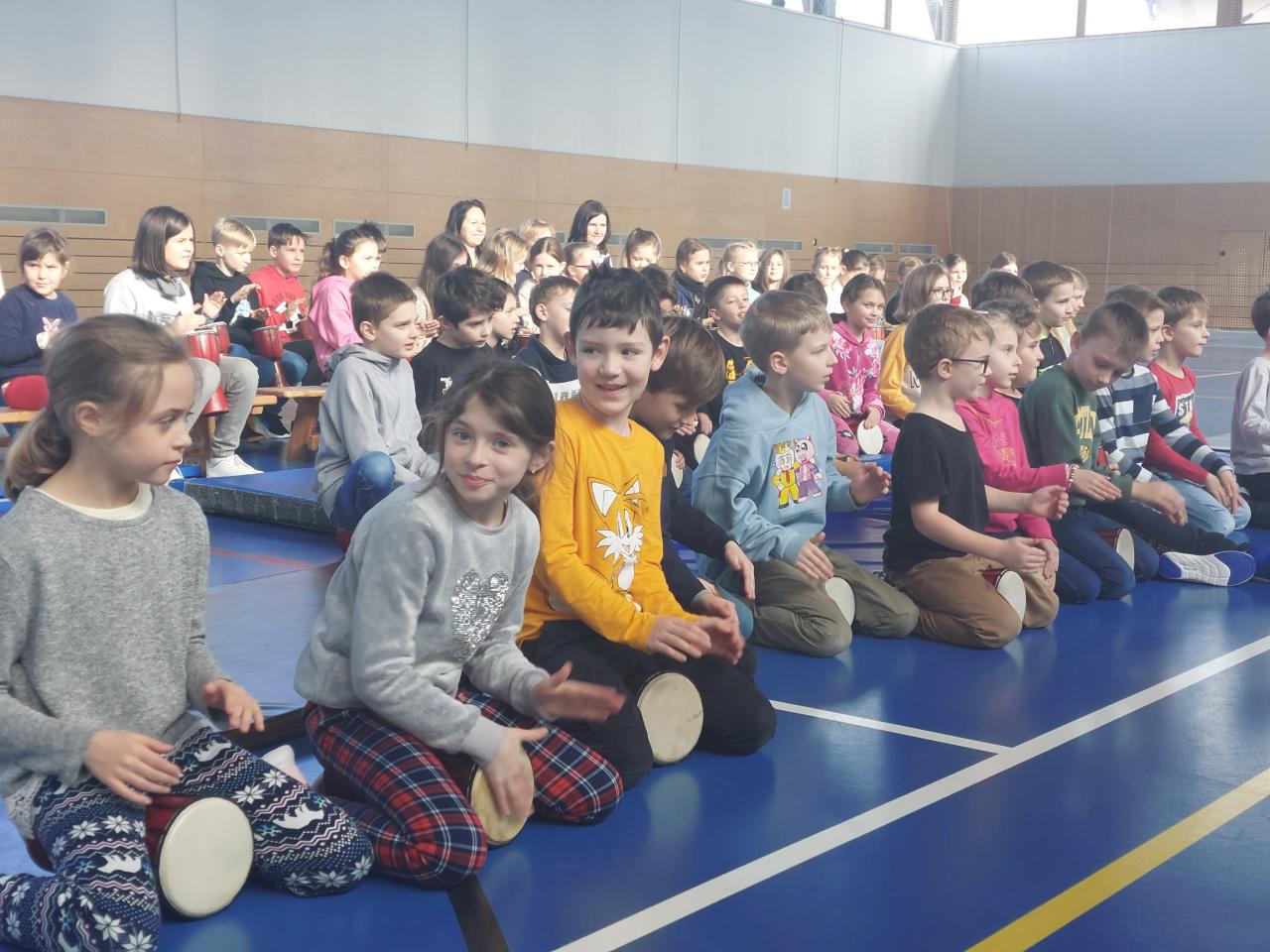 Ve středu 14. února, kdo měl ruce, bubnoval. Soustředěné obličeje dětí napoví, že to vůbec nebyla jednoduchá záležitost. Rytmy se střídaly, ruce bolely. Přesto, si to všichni náramně užili. Tato akce byla financována z dobrovolných příspěvků, které se vybraly na "Rozsvicování vánočního stromečku v Dolní Lhotě" a při "Vánočním koncertu žáků naší školy" v prosinci 2023. Děkujeme za skvělý zážitek