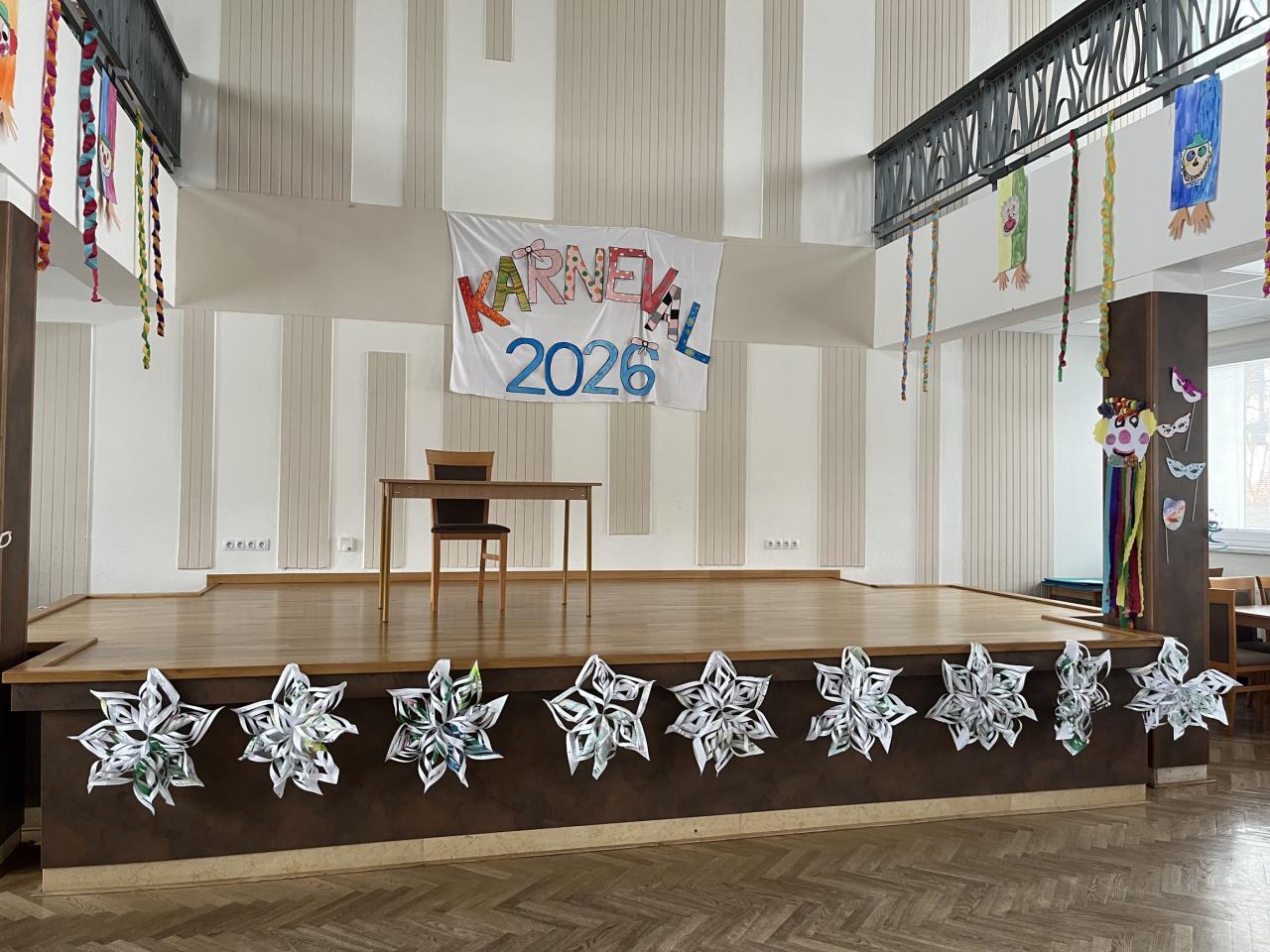 Děti ze všech tříd i MŠ se podílely na výzdobě sálu pro dětský karneval. A že se jim to moc vydařilo!